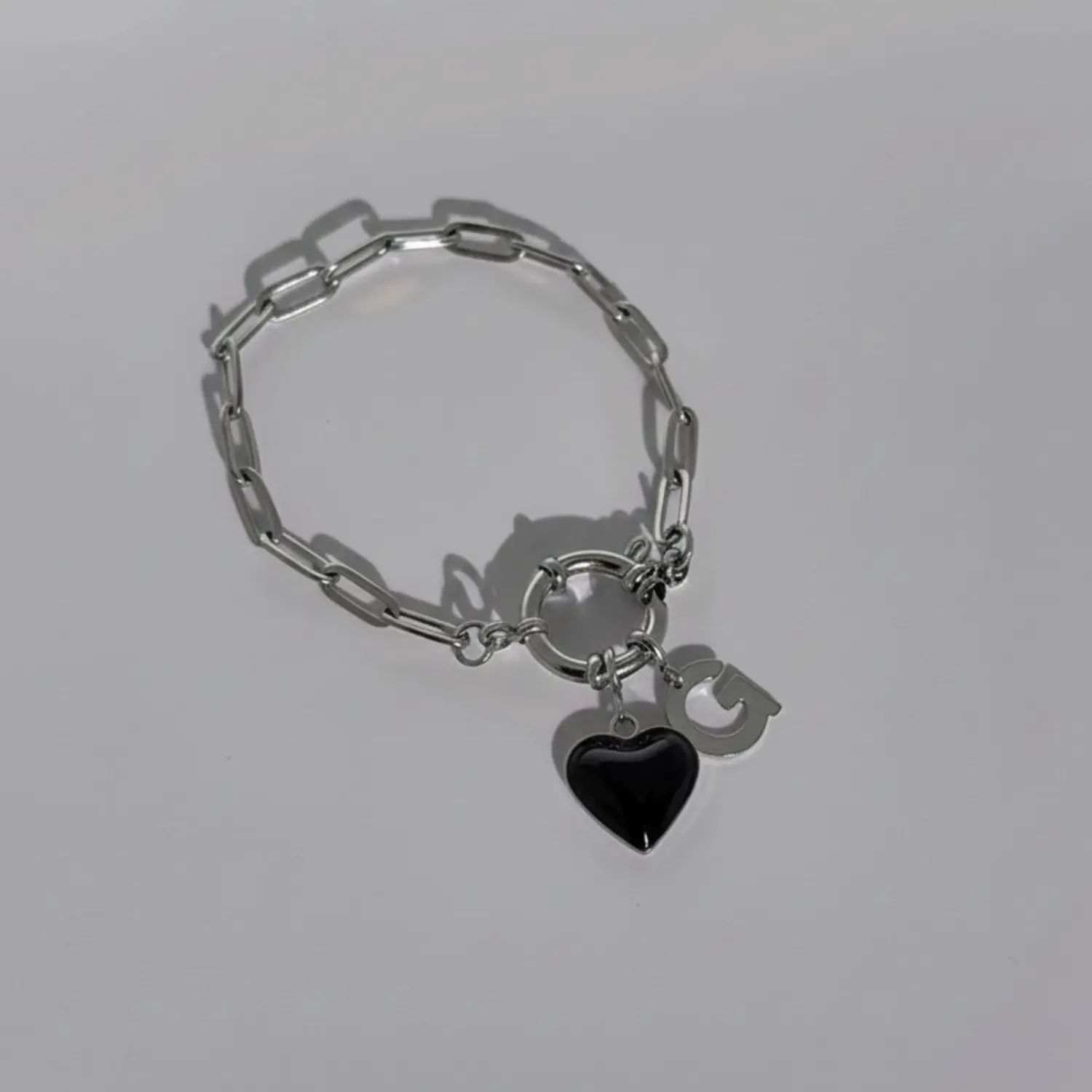 • bracelet connecté en acier argenté avec charm coeur noir et charm initial